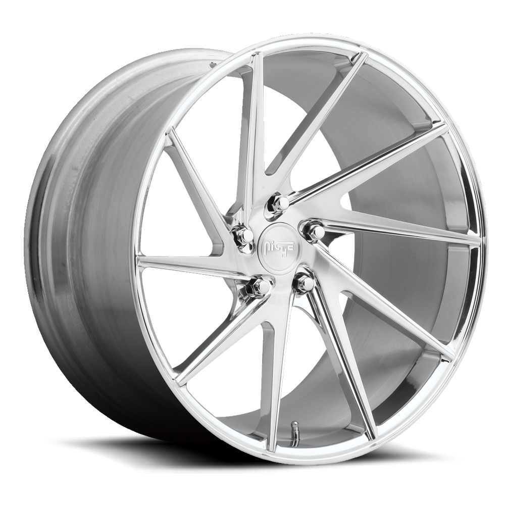 Niche Forged wheels are 100% custom made in the U.S.A. Machined from 6061-T6 forged aluminum, every set is custom tailored from start to finish meeting your specifications. Sizes range from 14" - 26" diameters with anywhere from 6" - 17" widths. Available in any construction option; Monoblock, Mono II, 2 piece bolted or welded, and 3 piece rolled lip or step lip with a wide range of profile options from convex to deep concave with elevated spokes. Custom finish options are limitless. Solid single tones, textures, liquid color matching, multi colored options, tinted and colored transparent powders or liquid paints laid over intricate hand polished or brushed metal.